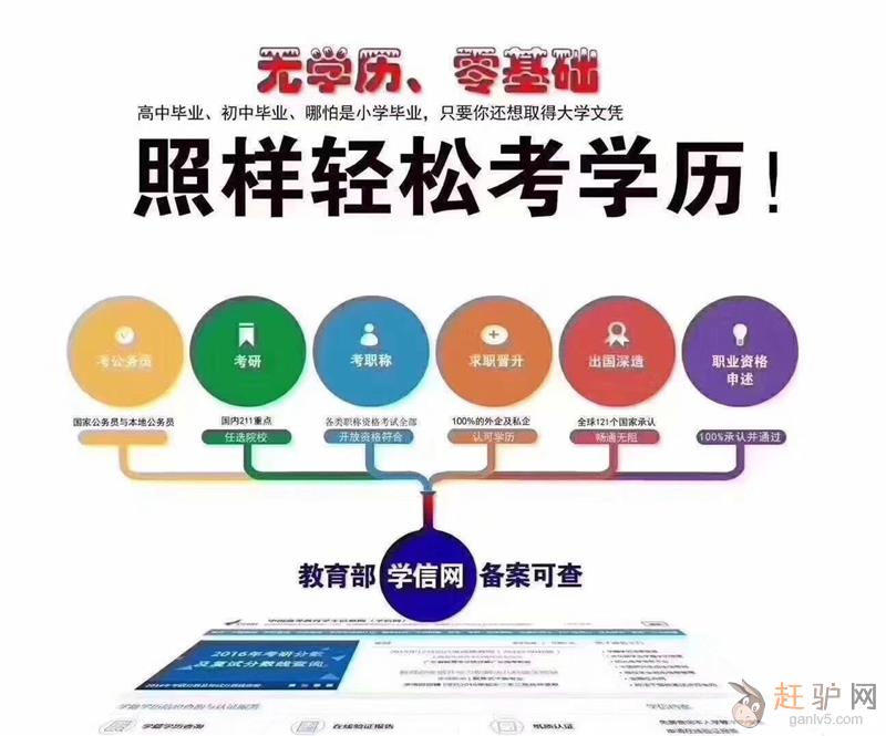 学历类:自考、成教、网教、电大专科本科赶+驴+网